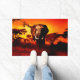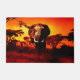 Aus der Bürste taucht ein Stier Elefant auf, der im Scharlachroten Sonnenuntergang gebadet wird.