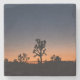 In der Mojave-Wüste liegt Joshua Trees an der Skyline. Mit ihren aufgewachsenen Armen empfangen sie die Nacht auf dem Wüstenboden.