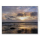 Ein fotografisches Design eines sanften, traumhaften Sonnenuntergangs über dem Meer und reflektiert sich im Wasser auf dem Strand. Wales.
