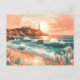 Sunset Lighthouse Ocean Beach Boho Floral Postkarte
