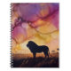 This image depicts a tranquil scene of a lion silhouetted against a vibrant sky, created with the bold, fluid strokes of alcohol ink art. It captures the peaceful beauty of nature at dusk.