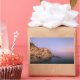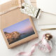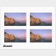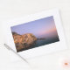 Rechteckiger Aufkleber mit lila Himmel bei Sonnenuntergang über dem hübschen Ort Manarola, erbaut auf den Felsen über dem Mittelmeer an der Küste der Cinque Terre in Ligurien, Italien.