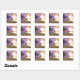 Stickers mit meinem Kunstwerk einer tropischen Szene mit einem Segelboot an einer Insel segeln und Palmen mit einer untergehenden Sonne in einem Himmel von lila und gelben Wolken.