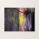 Originelle Malerei eines Sonnenuntergangs im Meer. Erstellt mit Acrylfarbe.