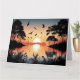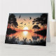 A stunning sunset scene over a peaceful lake, with flying birds and silhouetted trees creating a calm and reflektive mood. Perfekt for home decr and nature lovers alike