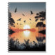 A stunning sunset scene over a peaceful lake, with flying birds and silhouetted trees creating a calm and reflektive mood. Perfekt for home decr and nature lovers alike