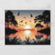 A stunning sunset scene over a peaceful lake, with flying birds and silhouetted trees creating a calm and reflektive mood. Perfekt for home decr and nature lovers alike