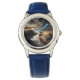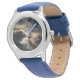 Kinderuhr aus Edelstahl mit blauem Lederarmband