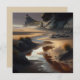 "Capture the Essence of New Zealand: Immerse yourself in the serene beauty of the South Island's rugged coastline with this captivating image. Bathed in the golden glow of a sunset, the sandy beach unfolds before your eyes, adorned with dark rocks and hues of brown sand. A gentle stream meanders through the landscape, its path leading gracefully to the vast expanse of the ocean. As warm sunlight casts long, enchanting shadows across the scene, you'll feel transported to a tranquil oasis of natural wonder. Perfect for those who yearn to bring the breathtaking landscapes of New Zealand into their home."