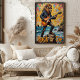 Dieses dynamische Kunstwerk zeigt einen Löwen, der mühelos in Sonnenbrillen und einer Lederjacke cool aussieht, meisterhaft eine elektrische Gitarre "zerkleinert" und auf einem prominenten Felsen ausgeglichen wird. Die Szene entfaltet sich über einen turbulenten Ozean mit texturierten Wellen und einem feurigen Sonnenuntergang Himmel. Das dicke, ausdrucksstarke Impasto schafft eine greifbare Textur, wodurch die "Rock or Die"-Deklaration mit der Rohenergie der Performance Resonanz findet.