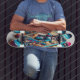 Dieses lebendige Skateboarddesign aus der "Coolen Cat Collection" besticht durch einen coolen Katz-Skater inmitten einer spannenden Fahrt mit den Sets der Sonne. Die dynamische Haltung und die ausdrucksvolle Freude des Charakters prägen das aufregende Wesen des Skateboardens. Der Hintergrund mit seinen Farbverläufen von Sonnenuntergangsfarben und silbrigen Palmen schafft eine lebendige Atmosphäre, die den Skateboardengeist in einem tropischen Ambiente verkörpert.