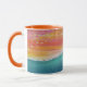 Orangefarbene Tasse mit Surfen und Sonnenuntergang, orangefarbener Himmel von Island Art Adventures