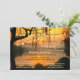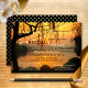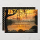 Eine festliche Brautduscheinladung mit Blick auf See oder Wasserfront bei Sonnenuntergang mit funkelnden Saitenlichtern.