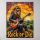 Dieses bezaubernde Gemälde mit einem Löwen, komplett mit Sonnenbrille und Lederjacke, tief eingebettet in eine "Sonnenuntergangssymphonie" auf einer elektrischen Gitarre. Er ist auf einem Felsen ausgeglichen und überblickt ein lebendiges Tal von grünen Hügeln und Bäumen, alles unter einem atemberaubenden, strukturierten Sonnenuntergangshimmel. Das lebendige, impasto Bürstenwerk schafft eine lebendige und aufregende Atmosphäre, die perfekt das "Rock or Die"-Ambiente dieses einzigartigen Outdoor-Konzerts vermittelt.