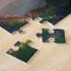 This jigsaw puzzle features a dramatic mountain landscape captured during the warm "golden hour" of sunset.