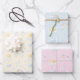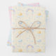 Perfect wrapping paper set for the new baby! We've got the genders covered with one sheet each of . This pretty watercolor design with its rainbows and sunshine filled clouds comes as one sheet each with pink, blue and yellow backgrounds to cover most genders.