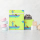 Padleboarding Geschenkpapier mit Mädchen auf einem Brett mit ihrem Hundedesign. Das Muster wird über tropische Chartreuse-Farbe gedruckt. Wrap Geschenke für jugendliche Tochter oder Freund. Dieses lustige und sportliche Papier kommt in verschiedenen Längen.