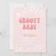Super bébé ! Invitation de baby shower d'inspiration rétro avec marguerites de style années 70 et polices et couleurs boho.