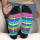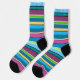 Farbenfrohe, lebendige blaue, lila, grüne, türkisfarbene, grüne, gelbe, rosa, schwarz-weiße Streifen Accessoires Socken. Fügen Sie Ihrem Kleiderschrank einen Pop Farbe und Spaß mit diesen lebendigen gestreiften Socken hinzu, die perfekt für jeden geeignet sind, der Lieben hat, mit seinen Schuhen eine Aussage zu machen. Diese Socken sind mit fetten, auffälligen Streifen in verschiedenen Farbtönen gestaltet, um jedem Outfit eine spielerische Touch zu geben. Egal ob Sie sich für einen besondere Anlass anziehen oder einfach nur ein bisschen Flair in Ihren Alltag einfügen, diese komfortablen und stilvollen Socken sind der perfekte Weg, um Ihre ganz besondere Persönlichkeit auszudrücken.