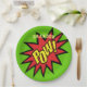 Diese bunten Teller sind perfekt für jeden Super Hero oder Super Hero Fan! Sie sind in hellen Kalkgrün mit dem Wort POW! in Gelb, umgeben von einem roten Berst. Ihr Name wird in gelb am oberen Ende des Bersts angezeigt, wenn er in der auf dem Bildschirm bereitgestellten Box hinzugefügt wird. Wählen Sie Anpassen, um die Hintergrundfarbe zu ändern.