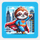 Super Sloth Funny Pixel Art Hero CityScape Design Quadratischer Aufkleber