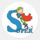 Super Strichmännchen Helden T - Shirt, Tasse, Karten, Totentaschen, Aufkleber und andere Gegenstände mit Super Boy in einem grünen Outfit und Maske, rot Kap und Text, der "Super"! Du kannst ihm einen Namen hinzufügen!