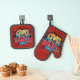 Super Vater Mustache Modern Grunge Oven Mitts & Pot Holders präsentiert den Text "Super Vater" in moderner Rot- und Gelbtypografie auf einem blau-roten Grunge Hintergrund mit einem Schnurrbart. Geschenke zum Vater zum Geburtstag, Vatertag, Weihnachten, Feiertage und vieles mehr. Erstellt von Evco Studio www.zazzle.com/store/evcostudio