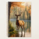 Douze points sur un cerf fabuleux. En regardant la zone des bois à l'automne, il se tient sur la rive d'un petit lac.