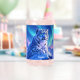 Ajoutez une touche surnaturelle à votre boisson préférée avec ce canapé en verre, qui présente un léopard des neiges majestueux aux yeux bleus percevants, sa fourrure ornée de motifs complexes de givre et de glace, tandis qu'il perce au sommet d'une chaîne de montagnes enneigées qui est rétroéclairé par le soleil couchant et l'aurore boréale. Personnalisez avec un nom ! Reverse affiche un design identique. Design © W.H. Sim. Voir plus sur zazzle.com/word2art