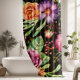 Rideau de douche moderne avec un joli motif floral rose et violet sur un arrière - plan noir