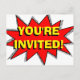 Jouez une soirée à thème super héros avec ces super invitations hautement personnalisables! POW ! Conservez cet effet sonore ou changez-le en un plus adapté à votre événement. Le verso de l'invitation dit "VOUS ÊTES INVITÉ !" avec le même dessin de style comique que le devant. Ces invitations seraient parfaites pour une soirée super-héros pour les enfants ou les adultes ! Ces cartes postales sont moins chères que les invitations régulières, donc vous pouvez planifier une fête d'anniversaire excitante et bon marché pour vos enfants avec des invitations peu coûteuses!