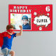 Superhero Comic Speech Bubble Boy Birthday Foto Banner. Fügen Sie Ihr Foto, Ihren Namen und Ihr Alter hinzu. Fun roter Superheld Geburtstagsbanner für Jungs.