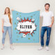 Superheld Comic Speech Cloud Boy Name Fleece Blanket. Die Decke ist hellblau und fröhlich, mit spielerischen gelben Sternen geschmückt, um die Touch zu genießen. Das herausragende Merkmal dieser Decke ist die Sprachwolke des Cartoon, die mit dem Namen des Kindes für eine einzigartige und personalisierte Touch angepasst werden kann.