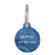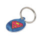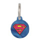 Eine abgeschrägte Version des klassischen Supermann S-Schild Logos auf einer blauen Gewebebeschaffenheit.