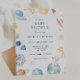 Invitation de Baby shower sur le thème de l'espace avec un astronaute de bébé aquarelle et des éléments spatiaux incluant des planètes, des étoiles, une fusée et des OVNI. Personnalisez avec vos informations ou cliquez sur "Cliquez pour customiser plus loin" pour modifier les styles, la taille et les couleurs des polices.