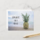 Photo d'un ananas assis sur la plage avec une mignonne citation typographique.
