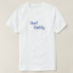 Surf Daddy White tee mit mittlerem blauen Text. In diesem einzigartigen Ken-Ray Design Classic Beach Shirt treffen Sie auf den Strand mit Ihrem Brett.