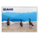 Un rendu numérique de trois Bernaches du Canada envisage de se diriger vers le surf entrant sur la rive du lac Pend Oreille à Sandpoint (ID); les montagnes bleues sont au loin. Le texte "IDAHO" apparaît également.