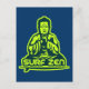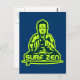 Sei mit deinem Board eins. Gestaltung des meditierenden Buddha auf einem Surfbrett. In dunkelblau und neongrün.