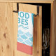 Ride the wave of good vibes with this customizable beach-themed kitchen towel. Featuring bold typography that reads “High Tides and Good Vibes,” a colorful surfboard, playful wave accents, and a burst of sunshine, this design captures the spirit of coastal living. Whether you’re decorating a beach house kitchen or looking for the perfect housewarming gift for a homeowner who loves surfing and catching ocean waves, this design will add a splash of personality to any space. Personalize the three text placeholders with your own phrase to create a unique seaside keepsake.