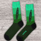Surfbrett auf jeder Seite auf den Kälbern mit einem hellgrünen bis grünen Farbverlauf und das letzte dunkelgrüne auf dem Fußteil der Socken. Ungewöhnlich, farbenfroh und repräsentiert Ihr Hobby und Ihren Lebensstil. Erhältlich in verschiedenen Varianten.
