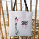 Surfer Girl mit rosa Surfboard Surf Art Tote Bag, Anpassen mit Ihrem Text. Tasche zum Thema Küste