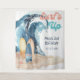 Surfen Thema Kindergeburtstag Foto Hintergrund bietet eine Aquarellwelle, Surfbretter und Seesterne am Strand mit "Surf's Up" Typografie in Retro coole Schrift. Die tropischen Farben (Korallen, Gelb, Türkis und Marineblau) sind ideal für Jungen und Mädchen. Name und Datum können personalisiert sein. Kunst von KL Stock.