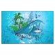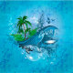 Surfen, Surfbrett mit Palmenvögeln, Blau, Blasen, Spaß, Palme, Sport, Sommersport, surfend, Baum, Wasser