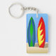 Le porte - clé parfait pour un surfer avec la conception fraîche de deux planches de surf brillamment colorées se tenant sur une plage. Ces planches de surf sont rétros style classique et réminiscentes d'un été lumineux, jour ensoleillé à la plage. Une grande conception pour des amants de la plage et de surfer.