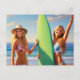 Surfer Girls mit Surfboard Postkarte
