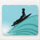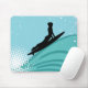 Silhouette eines Mädchens auf ihrem Surfbrett auf einer Welle.