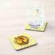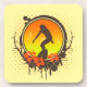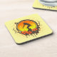Grunge Surfer Design bei Sonnenuntergang mit Hibiskus-Dekoration auf gelbem Hintergrund