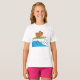 Ein Bulldogge im Stil eines Cartoon, der auf einer Welle surft. Dieses Design sieht auf diesem Girls-T - Shirt wirklich effektiv aus