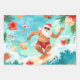 Bring the beach to your Christmas gifts! This cheerful watercolor wrapping paper features Santa Claus surfing tropical waves, surrounded by palm trees, seashells, and Christmas lights. Perfect for surfers, beach lovers, and anyone celebrating a sunny Christmas by the sea.